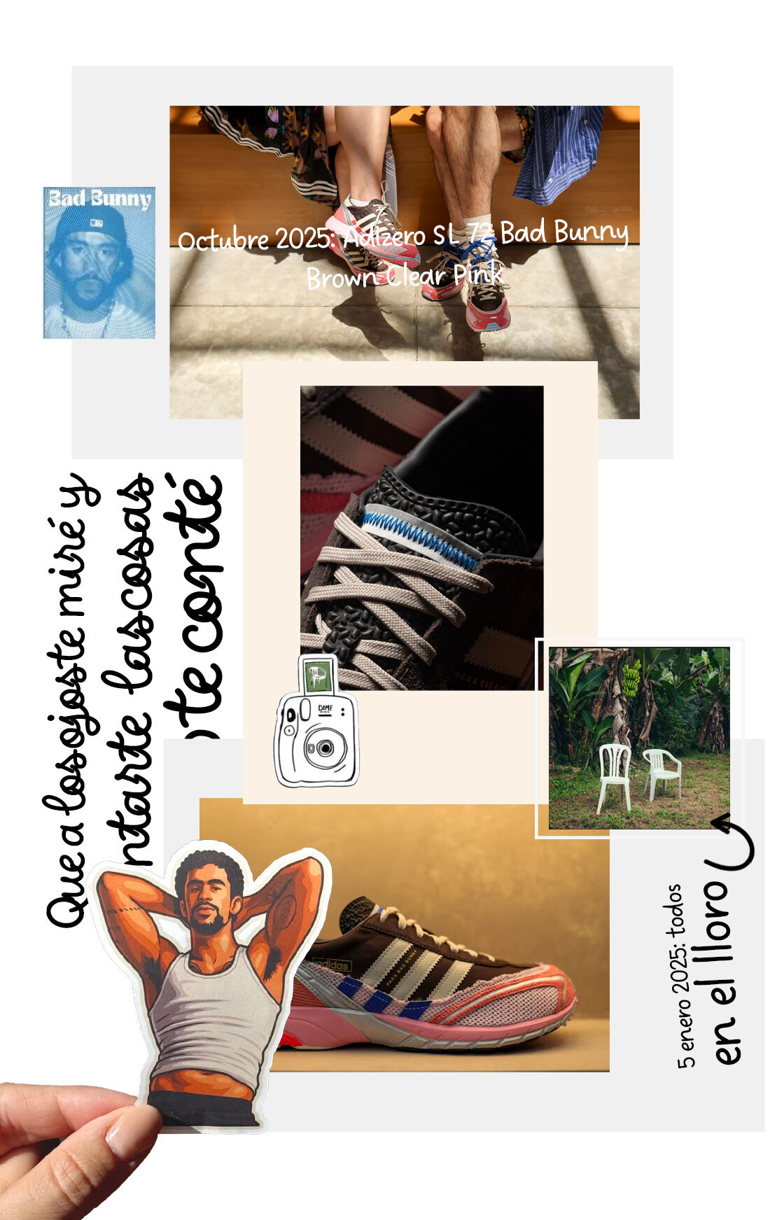 Siguiendo las tendencias actuales, esta fue la primera vez que la colaboración se alejó del estilo chunky para apostar por una silueta de suela baja, mucho más delgada. El resultado es un sneaker que se siente más maduro, preciso en sus detalles y que mantiene muy presente tanto el espíritu deportivo de adidas como el pensamiento disruptivo de Bad Bunny: un tenis limpio, elegante y super fácil de usar.
