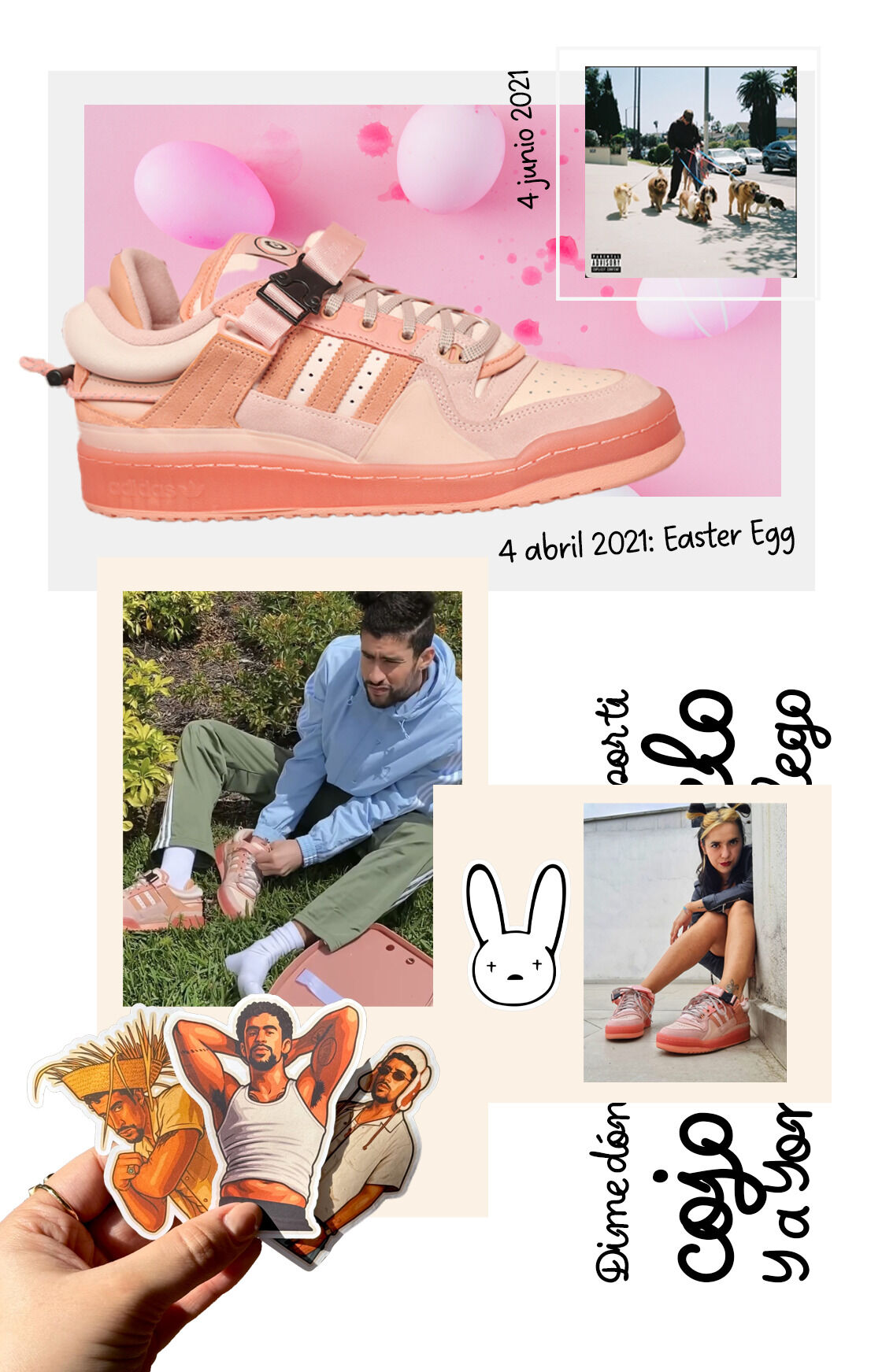 Lanzado apenas unas semanas después del primer par que Bad Bunny y adidas presentaron juntos, el Forum Buckle Low “First Café”, este segundo colorway llegó justo en el fin de semana de Pascua, en tonos rosa y coral pastel como guiño directo a los tradicionales huevos de esta celebración.