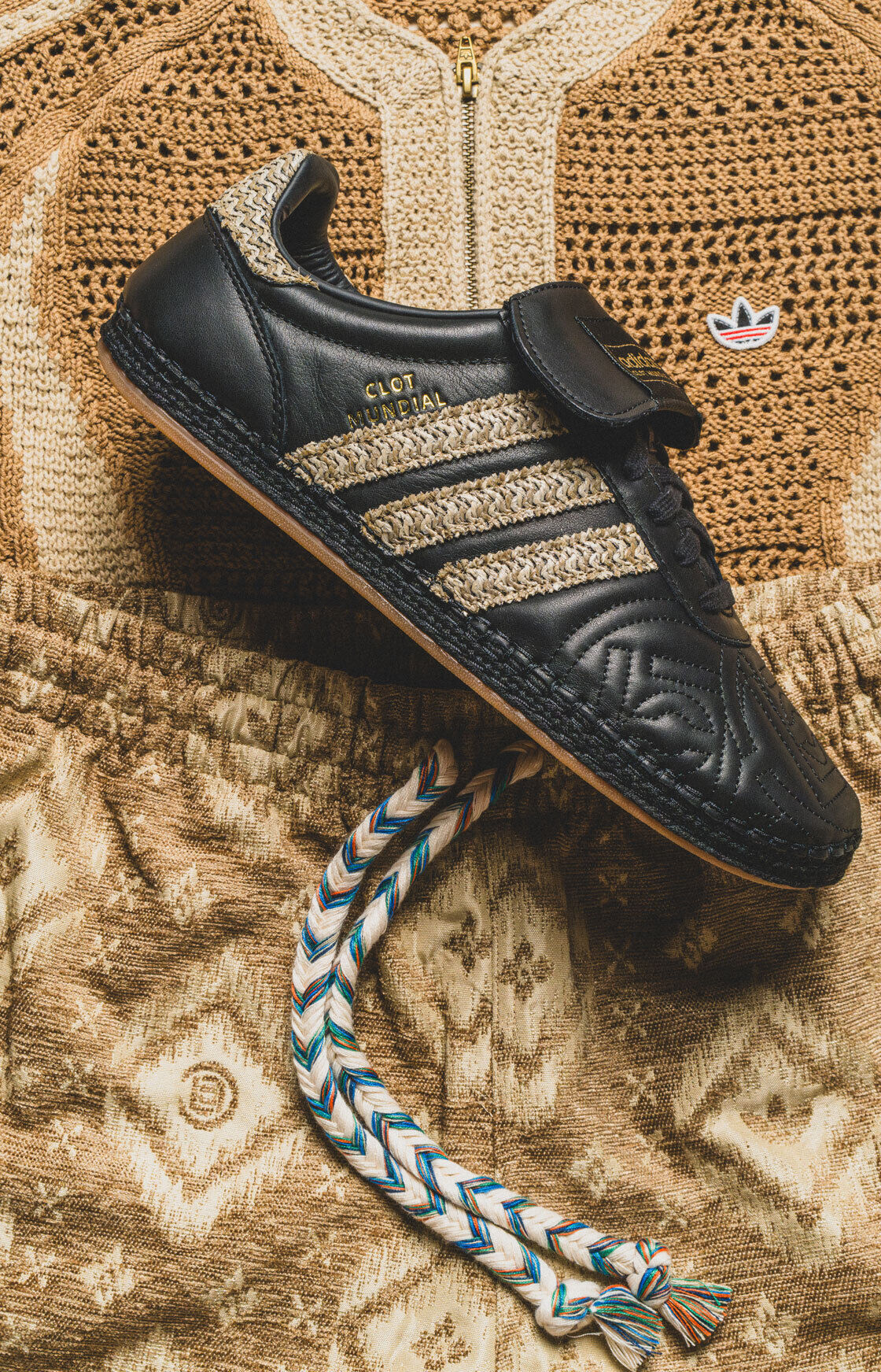 Pero si lo tuyo es el fútbol, el verdadero protagonista es el CLOT Mundial, que honra —a través de la visión de Edison Chen— el legado del icónico Mundial dentro del archivo de adidas.
