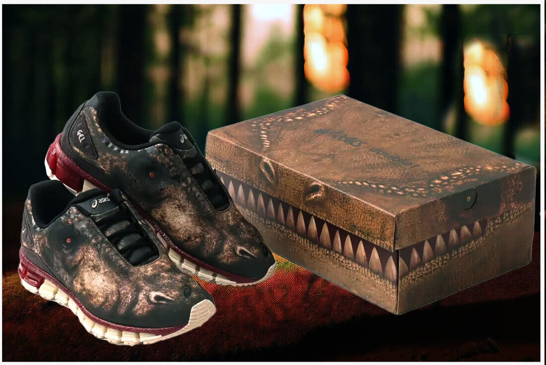 La última collab entre la marca de moda Doublet y Asics tiene un diseño pensado para que dos Tiranosaurios, te miren desde los pies.