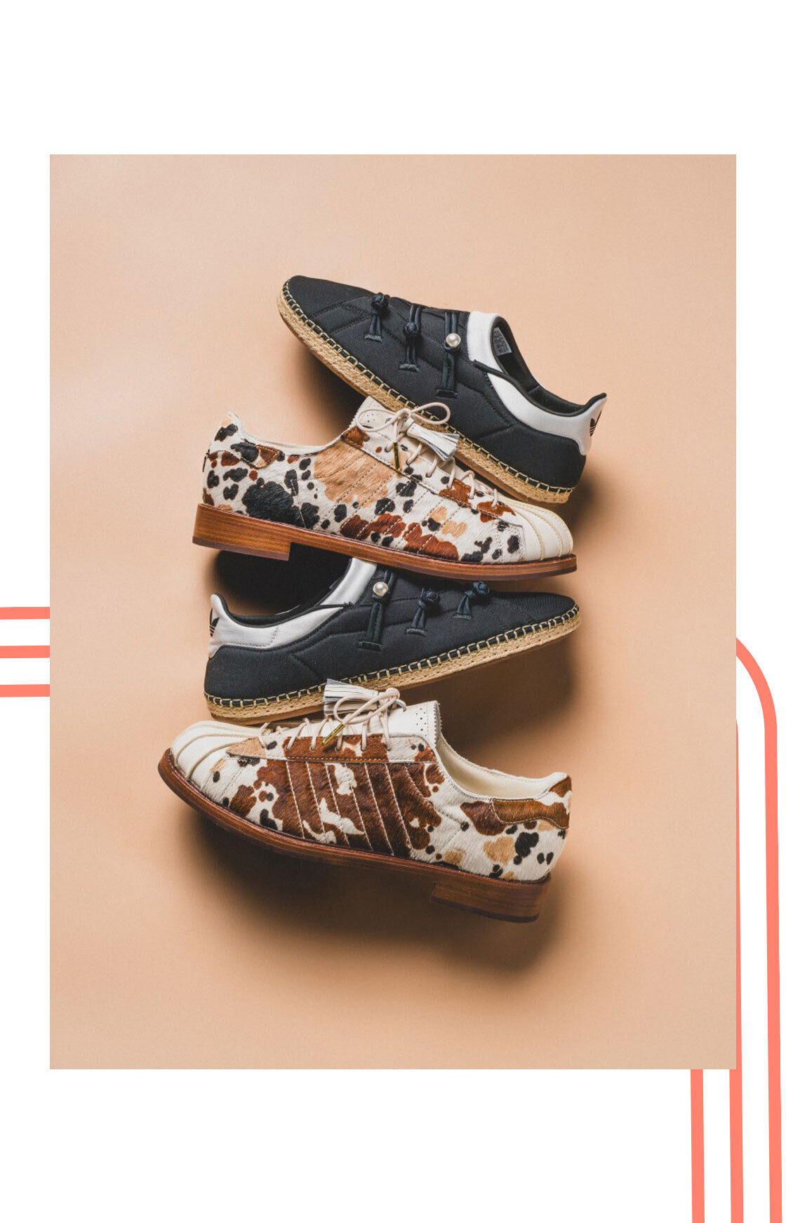 Y, claro, no podría ser el año del caballo sin pelo de pony, un guiño ¿guiño? una obviedad más bien a las festividades chinas. El Superstar Dress Shoe es un híbrido entre sneaker y zapato de vestir (¿alguien dijo que el zapato tenis murió?) en esta ocasión, Chen presenta un upper de pelo estampado con manchas de caballo que hace eco de las razas de tierras orientales; un empeine de cuero; coronado por una borla, la shell toe de cuero y una suela de madera. Es el OG, pero con un nuevo look.