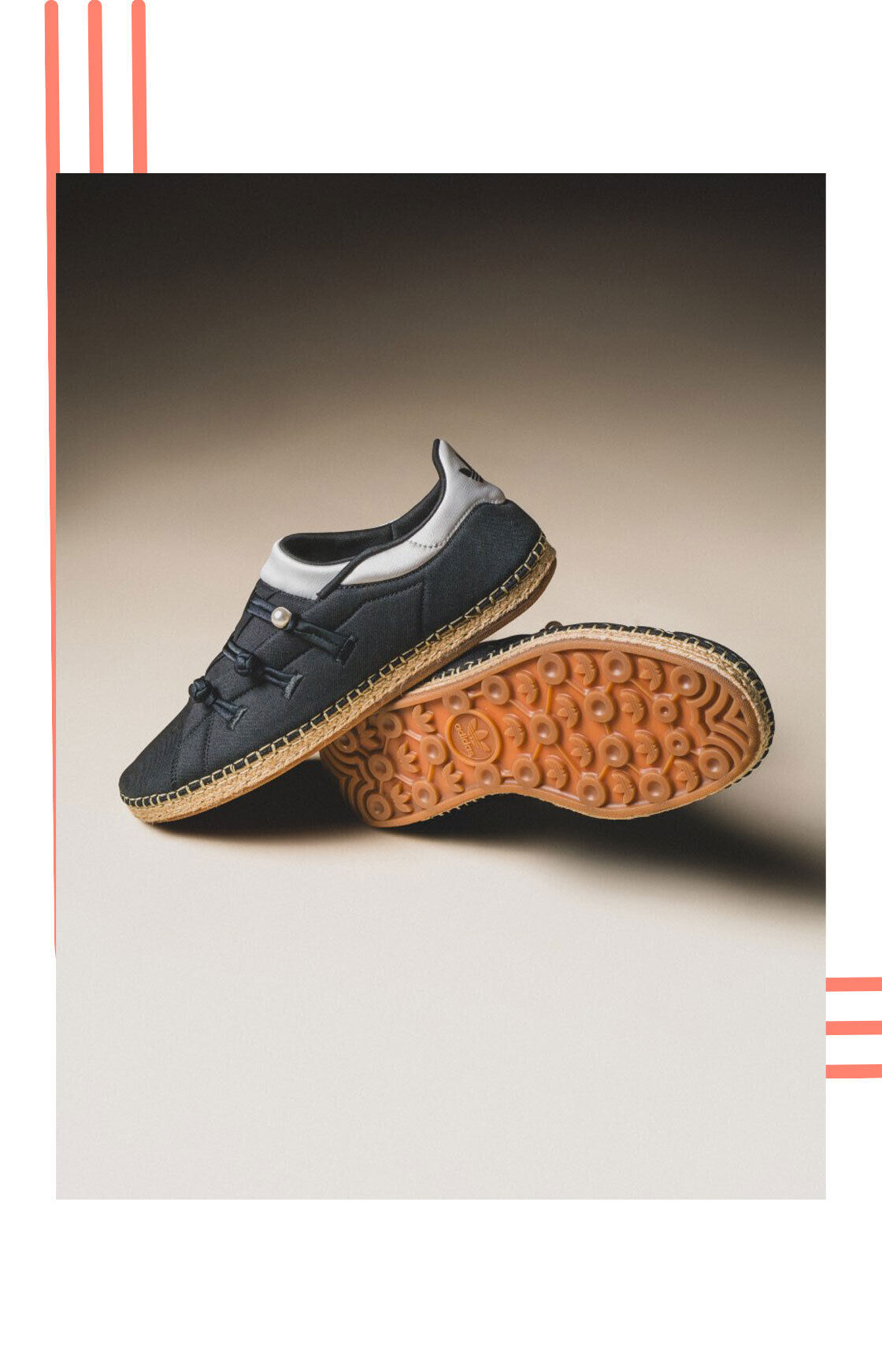Empezamos con un Qi Flow, que sin lugar a dudas es un reflejo del calzado de artes marciales tradicionales. Parece como si Chen al menos en forma hubiera tomado unos Stan Smith clásicos y les hubiera regalado luz propia. Nos encontramos un upper de nylon puntuado por un cuello satinado y un sistema de cierre de nudos chinos en un empeine asimétrico y como guiño de elevación, el nudo superior se reemplaza por una perla. Debajo, encontramos una mediasuela de alpargata tradicional, cerrando el viaje con una suela de goma con el patrón vintage de todos sus modelos.