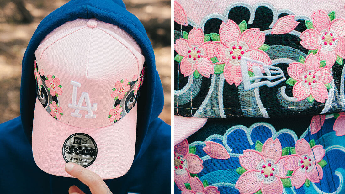 El diseño incorpora flores sakura a través de bordados cuidadosamente trabajados que rodean los logos de los equipos MLB. Esta mezcla entre lo deportivo y lo gráfico crea piezas con identidad propia, donde cada elemento suma al impacto visual.