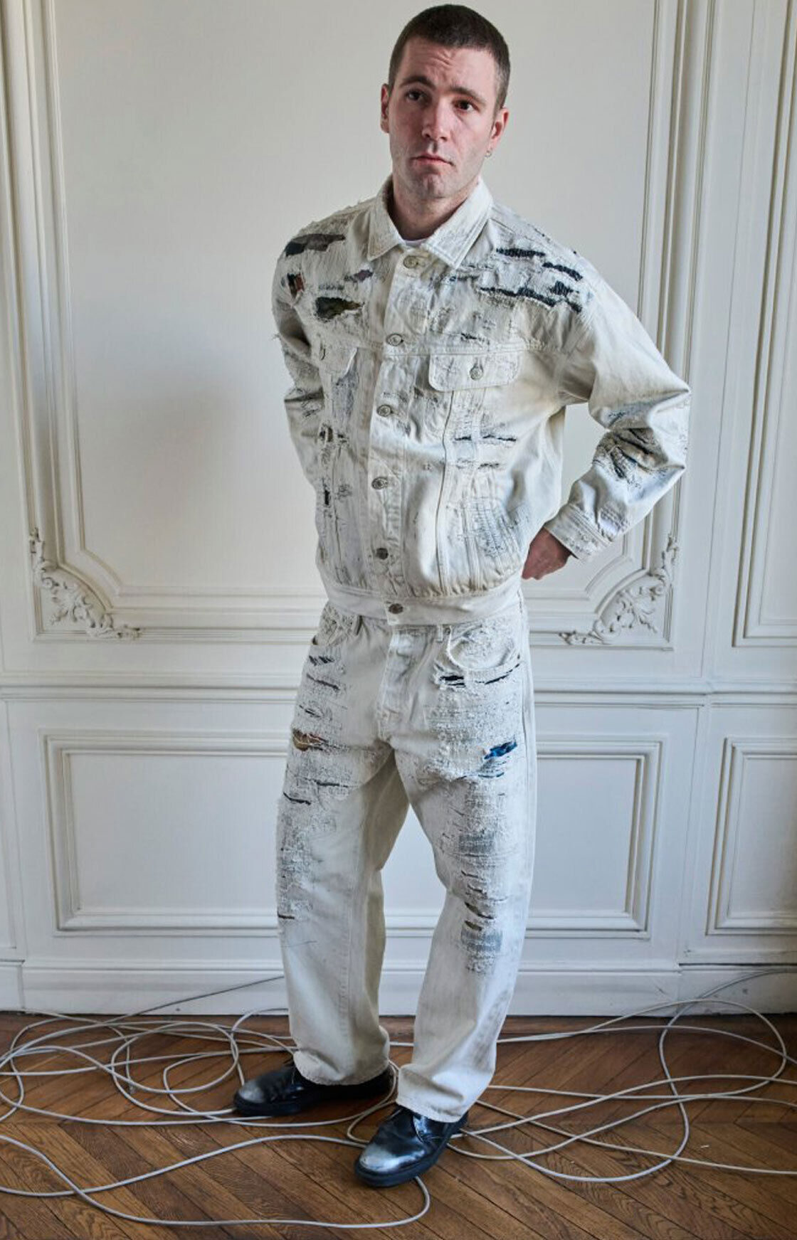 La mezcla de estampados, la estética de souvenir, construcciones upcycled y desgastes experimentales logran un statement claro: subvertir lo icónico para convertirlo en algo mucho más radical.