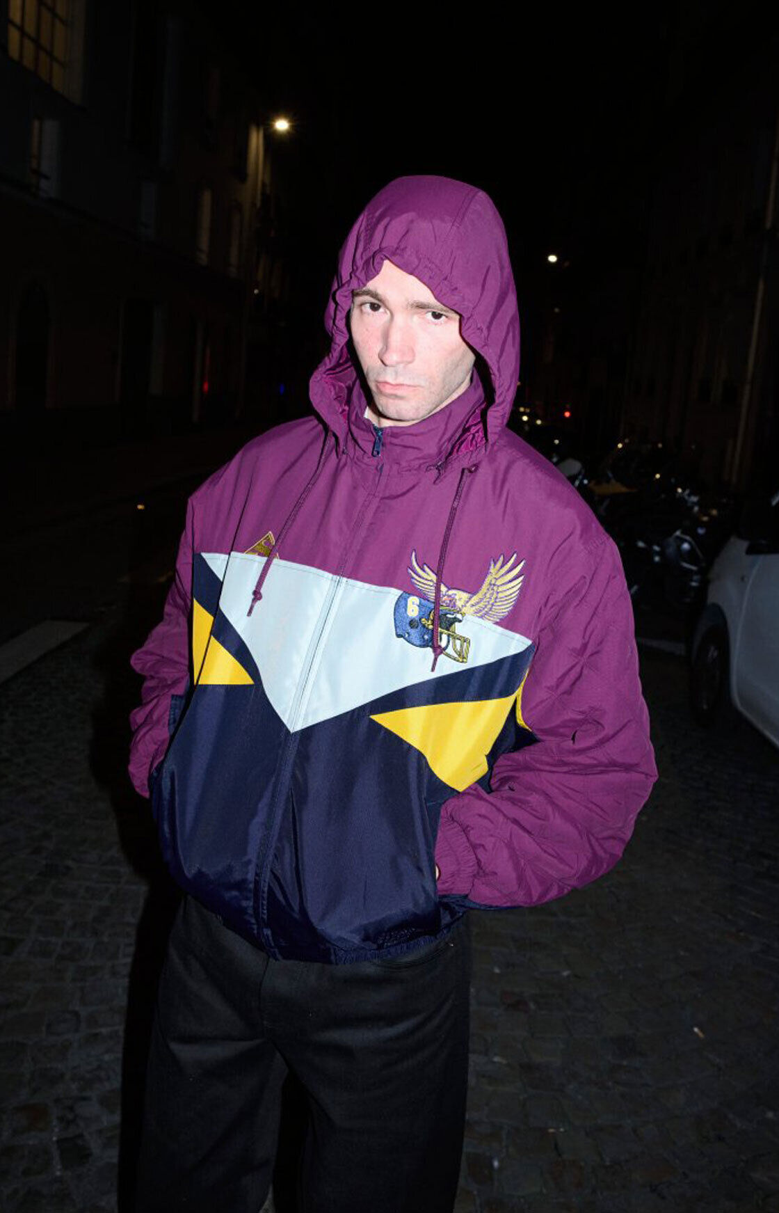 Hoodies y conjuntos súper retro: piezas de nylon en diferentes formas y colores que se unen en un look oversize, como si acabaras de salir de un concierto de britpop en los 90.